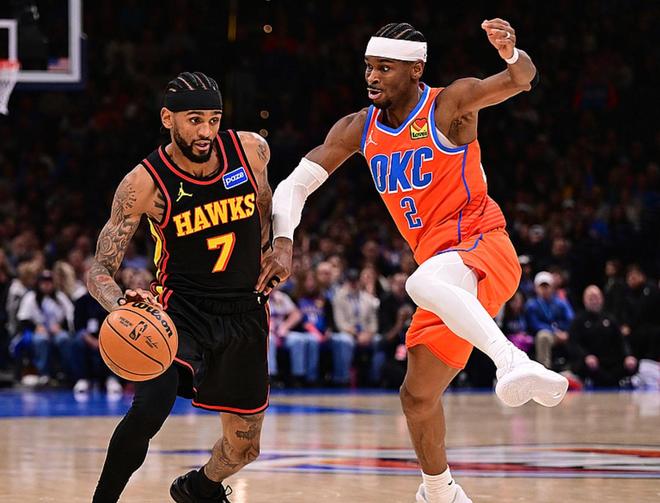 雷霆主場迎戰(zhàn)老鷹,老鷹少了特雷楊、波津、杰倫約翰遜3個(gè)核心,雷霆少了哈滕,上半場比賽老鷹表現(xiàn)不俗,半場戰(zhàn)罷領(lǐng)先4分,下半場比賽雷霆展現(xiàn)出了優(yōu)勢,最終雷霆以以11分優(yōu)勢贏下比賽。亞歷山大24中15得到39分5板6助2斷,切特14中9得到24分9板2助3帽,杰倫17中8得到20分9板7助,老鷹方面沃克24中11(三分14中6)得到30分4板5助2斷,奧孔古16中8得到26分14板6助。