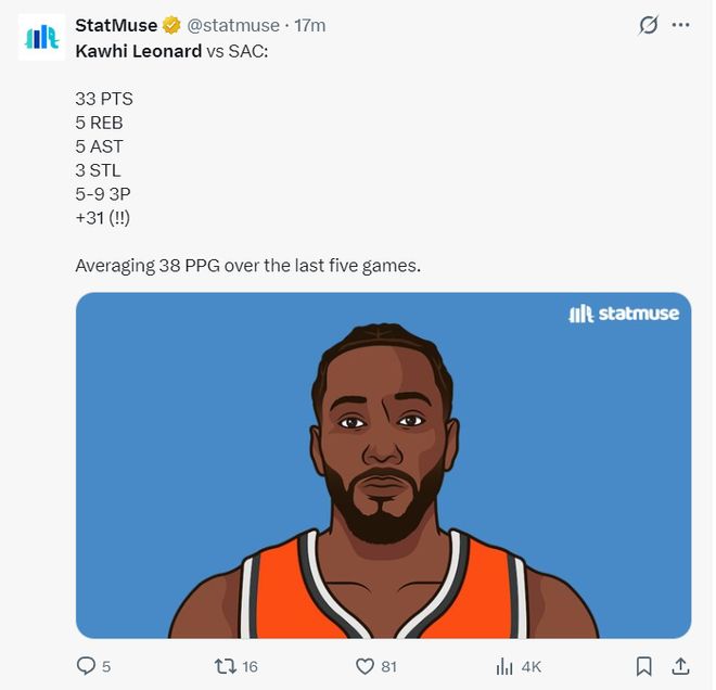 - 快船131-90大勝國王迎5連勝,倫納德33+5+5,哈登21分