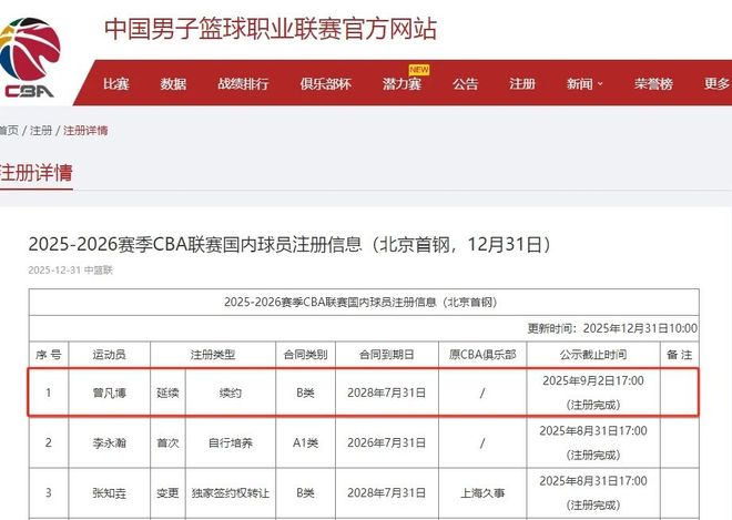 - 次頂薪!曾凡博續(xù)約北京首鋼,3年B類合同,助球隊(duì)沖擊CBA總冠軍