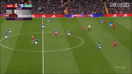 英超聯(lián)賽第18輪利物浦迎戰(zhàn)狼隊的比賽在安菲爾德球場進(jìn)行,上半場?;倏硕瞪渲兄溈ɡ固爻樯渲兄?,弗林蓬助攻赫拉芬貝赫抽射破門,埃基蒂克助攻維爾茨打進(jìn)紅軍首球,半場結(jié)束,利物浦2-0狼隊。下半場布埃諾補(bǔ)射扳回一城,阿洛科達(dá)爾頭球造險,最終利物浦2-1狼隊聯(lián)賽三連勝暫升第4。