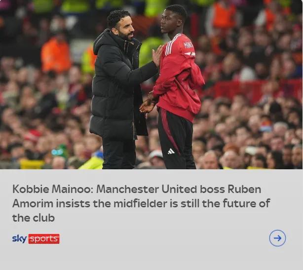 阿莫林在新聞發(fā)布會(huì)上接受天空體育采訪時(shí)表示,梅努依然是曼聯(lián)的未來。