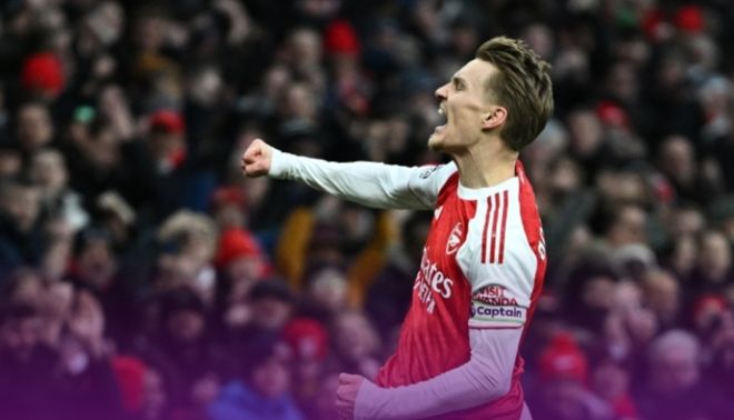 上半場(chǎng),賴斯頭球點(diǎn)給薩卡,薩卡右路橫傳,厄德高右側(cè)肋部得球,調(diào)整后起腳遠(yuǎn)射,球直飛下角,維爾布魯根撲救不及。就此,厄德高打進(jìn)自己本賽季首球的,阿森納的隊(duì)長(zhǎng)很是興奮。就此,阿森納暫1-0布萊頓。