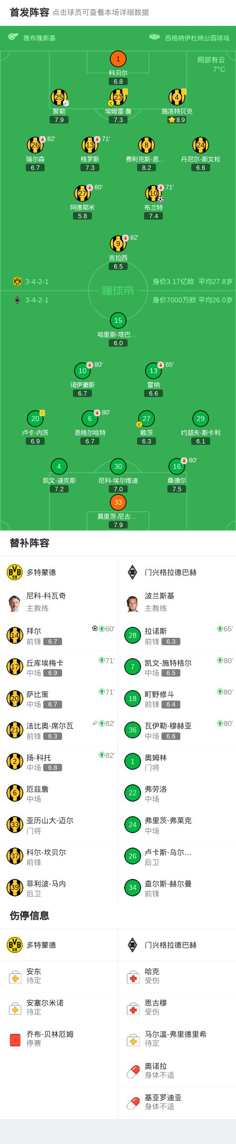 - 多特vs門興:吉拉西搭檔阿德耶米,布蘭特、格羅斯出戰(zhàn)
