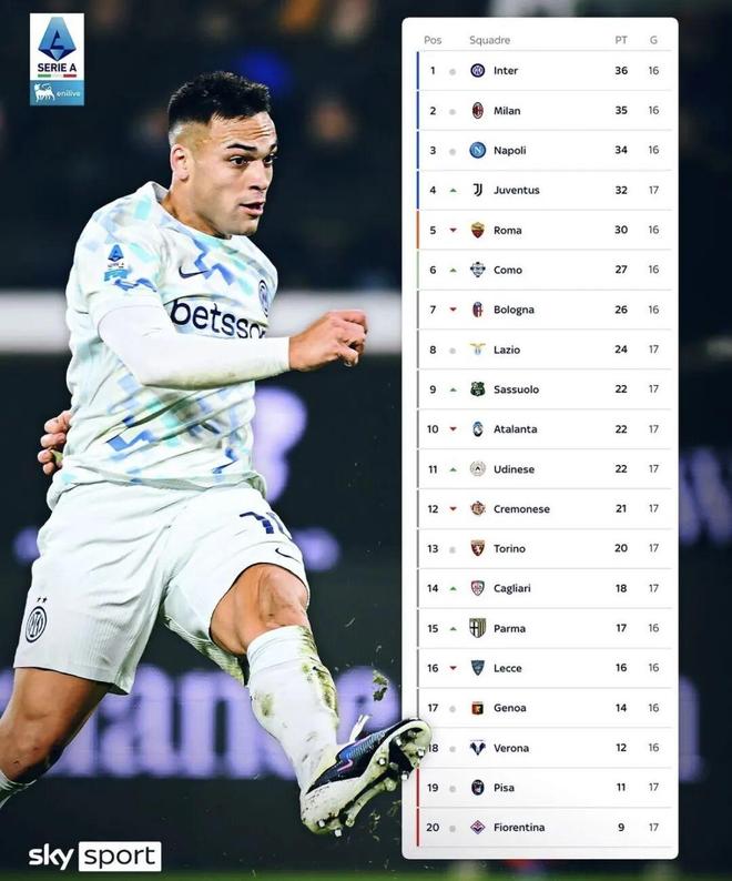 最終國(guó)際米蘭客場(chǎng)1-0戰(zhàn)勝亞特蘭大,重登意甲積分榜榜首。
