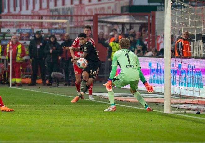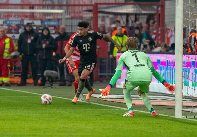 但本文想要特別介紹的這粒精彩進(jìn)球并不在2025年國際足聯(lián)普斯卡什獎的候選名單中。本賽季德甲第10輪,拜仁客場對陣柏林聯(lián),“南大王”此前已經(jīng)豪取聯(lián)賽9連勝,卻未想到在這里2比2戰(zhàn)平對手,終止了連勝步伐。但此役拜仁卻收獲了一粒足以參評賽季最佳的進(jìn)球——比賽第38分鐘,拜仁傳中被禁區(qū)內(nèi)的柏林聯(lián)后衛(wèi)頭球解圍,迪亞斯在禁區(qū)線附近得球后分給身旁的斯塔尼希奇,克羅地亞后衛(wèi)隨后直塞的力度稍大,出腳后他便抱頭懊惱。但路易斯·迪亞斯快速追到底線附近倒地將球救下,隨后過掉上搶的對手,幾乎是在“零角度”右腳抽射直掛球門遠(yuǎn)端上角入網(wǎng)。眼見“失誤”變“助攻”,雙手剛放下的斯塔尼希奇再次抱頭,對隊(duì)友在自己眼前的精彩表演表示難以置信。路易斯·迪亞斯本賽季以7000萬歐元轉(zhuǎn)會拜仁,前21場各項(xiàng)賽事打進(jìn)12球,表現(xiàn)相當(dāng)給力。