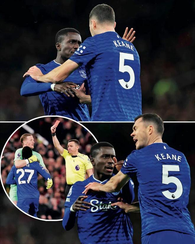 20年后,相似的場面竟然重現(xiàn)英超——本賽季英超第12輪,曼聯(lián)主場對陣埃弗頓。巧合的是,對陣雙方的實(shí)時(shí)排名和20年前一樣也是第10和第11位。比賽開場才13分鐘,埃弗頓球員伊德里薩·蓋伊和隊(duì)友邁克爾·基恩因傳球爆發(fā)矛盾,二人迅速從口角上升至肢體沖突,前者當(dāng)眾給了隊(duì)友一巴掌。位于附近的皮克福德趕忙上前拉架,但蓋伊仍怒氣未消反應(yīng)激烈,最終被紅牌逐出場外。這次內(nèi)訌雖不及20年前那次互毆“火爆”,但在英超比賽進(jìn)行當(dāng)中出現(xiàn)如此場面也是頗為罕見。畢竟這可是面向全世界的現(xiàn)場直播啊。然而,盡管埃弗頓早早少打一人,卻仍憑借霍爾的進(jìn)球最終1比0戰(zhàn)勝了曼聯(lián)隊(duì)。