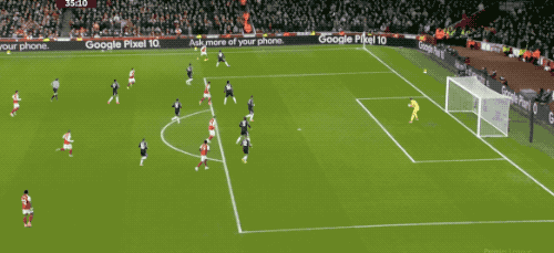 第48分鐘,阿森納球員薩卡開出角球,加布里埃爾在馬丁內(nèi)斯的腋下將球打進,這也是阿森納本場獲得的第一個角球。阿森納1-0阿斯頓維拉。