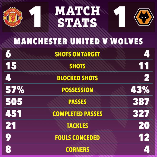 兩隊下半場都有取勝的機(jī)會。謝什科接應(yīng)卡塞米羅的過頂傳球后再次頭球,但角度太正,若澤薩牢牢抱住。幾分鐘后,狼隊后衛(wèi)耶爾森·莫斯克拉向謝什科示范了怎樣頭球才有威脅,他險些自擺烏龍,門將門線救險,曼聯(lián)錯失烏龍球大禮。