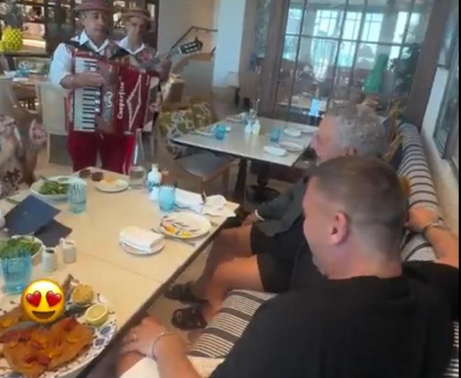 - 托蒂和巴喬在迪拜見(jiàn)面,兩人一起欣賞藝人表演并伴唱